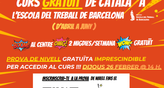 La Escola del Treball de Barcelona ofrece por primera vez cursos gratuitos de catalán, que se impartirán de abril a junio en colaboración con el Consorci per a la Normalització Lingüística (CPNL).
